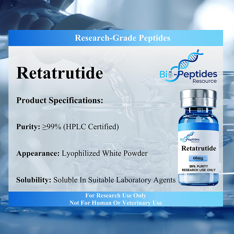 Retatrutide is intended for research purposes only. It is not designed for human or veterinary use and has not been evaluated by the FDA for commercial distribution in this form. Improper use is strictly prohibited and may violate federal, state, or local regulations. By purchasing this product, the buyer agrees that it will be used strictly for in vitro laboratory research. Not for human consumption.